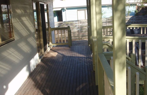 This two bedroom house, St Andrews Cottage, comprises a main bedroom with queen size bed, the second bedroom with king bed that can be split into two singles, bathroom with shower, toilet, laundry, kitchen with full cooking facilities and dining area, and lounge / sitting room. There is a large rear deck with an outdoor setting and BBQ to allow you to take advantage of summer weather.