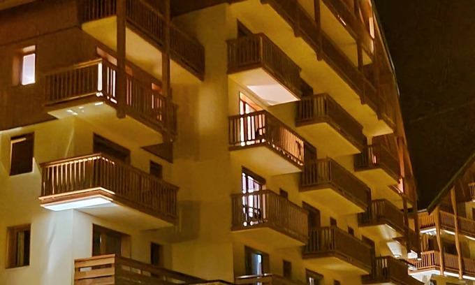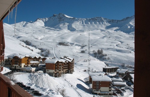 Apartment on the 4th floor (with lift) of one of the two chalets of the residence 'THE SUN BALCONIES I'. It enjoys an excellent southern exposure with unobstructed views of the heart of the resort as well as most of the ski area. From the balcony you discover the Maurienne valley, the massif of the Meije and the Arves peaks Belledonne.