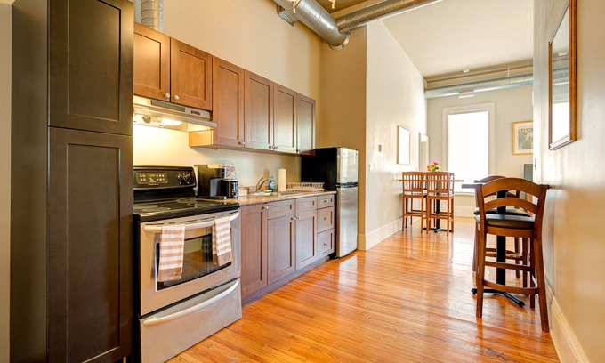 While you're here, you can enjoy all the comforts of home and more, including a full-sized refrigerator/freezer and an oven, as well as a stovetop and free WiFi. Other amenities include laundry facilities, an electric kettle, kitchenware and utensils, and a dining area.