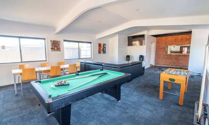 - Entertainment & Common Areas – Includes a games room with a billiards table, a BYO bar area, an outdoor beer garden area with BBQ