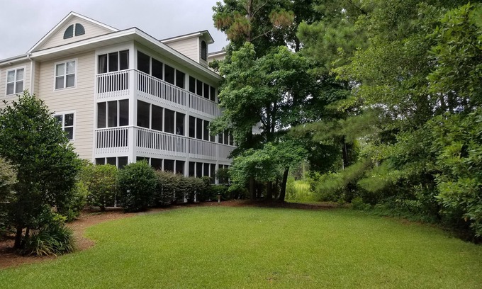 Later in the afternoon, you might enjoy an outing at one of the plantation's large scenic parks, or take advantage of the miles of lush walking and biking trails. Go for a swim at the club pool within walking distance from our villa, or take a short drive down to the Beach Club, "St. James By the Sea" located at nearby Oak Island. Pack a picnic and dine as you watch the sun set over the ocean. (Please note: The gated parking lots there are private and require a mounted RFID tag to open, however there are public beach access locations nearby. OKI parking fees may apply depending on season and time of day.)