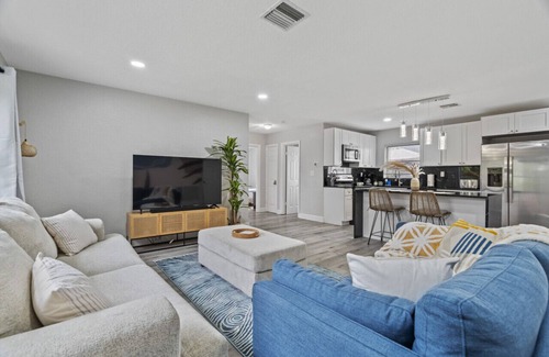 Enjoy a relaxing and fun stay only minutes to downtown St Pete at this beautiful, 3bd 2bth home that can sleep 10 comfortably. The house has: 1 King Bed, 3 Queen Beds, and 1 Queen Pullout Sofa Bed. Outside, you can enjoy a BBQ cookout and splash in the pool in a fully-fenced and private backyard. If you're feeling more adventurous, try the many activities, events, venues, restaurants, and attractions that surround this location making it the perfect home-base to your next extended stay!