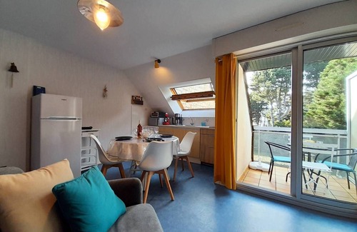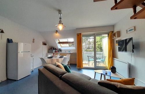 550m from Kernevest Beach in St Philibert and 2 km from the town center, in a quiet area, 3-room split-level apartment (approx. 51m² of floor space, approx. 34m² of living space) for 4 people, located in the Residence LE PHARE DE KERNEVEST (building Cabestan, 1st floor, door 13):