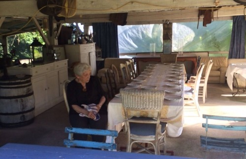 you will stay in the DRC in a large dining room with bar, TV, fireplace corner table for 12 people