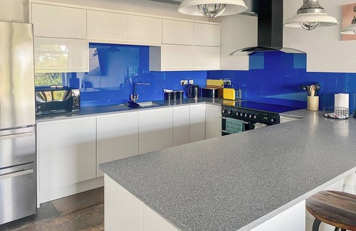 Enter through the front door into this contemporary part of the house which was renovated to offer guests two bedrooms, one with a stunning en-suite also a family bathroom. Soak in the stylish bright and airy, open-plan living room/kitchen/dining room for you to relax in. The modern kitchen is a delightful space to prepare a meal, complemented with quartz worktops, range cooker, American style fridge/freezer, dishwasher and microwave. The handy utility room off the kitchen includes a washer/dryer and separate sink. Enjoy lazy breakfasts at the nearby dining table and on an evening retire to the comfy sofas in the living area. Put your feet up in front of the crackling wood burner or curl up with a good book overlooking the garden through the floor-to-ceiling windows. The property has the real wow factor which will captivate you, with a large fish tank recessed into the wall beside the kitchen, which is a real magnet to watch. Situated in a ½-acre landscaped garden which is shared with the owner. There are many seating areas tucked away in different spots to ensure privacy. Whether it’s sitting in the courtyard outside the annex, on the bench overlooking the magnificent views, or testing your skills on the private tennis court.