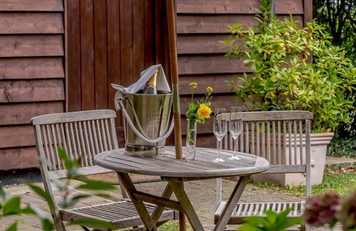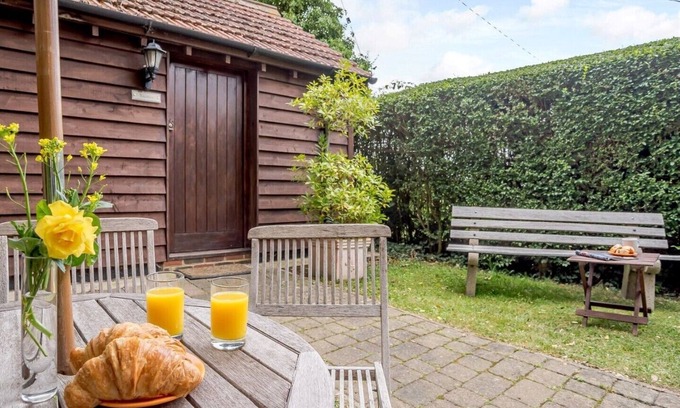 Outside there is an open garden area to the front with a bench plus table and chairs with views down the driveway across the fields and over to the distant Chiltern Hills. There is off road parking for one car available for guests.