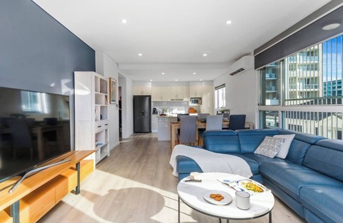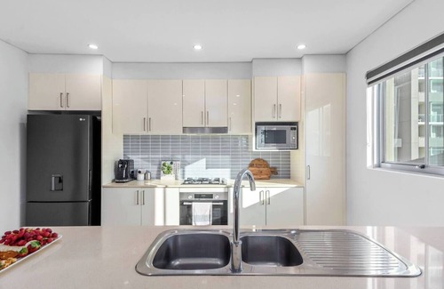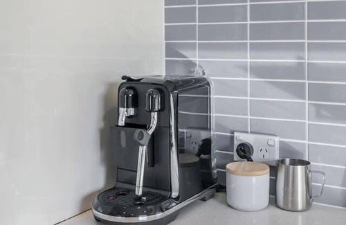 A wrap-around balcony captures views over the city skyline and across WIN Stadium toward the ocean. Sliding doors forge a seamless transition between the indoors and out and bathe the interiors in beautiful natural light while providing a beautiful backdrop to your stay. Air-conditioning and heating keep things comfortable all year round, while the spacious open-plan layout means ample room to relax. Cook up a feast in the fully catered kitchen, complete with a coffee machine, and come together for a shared meal indoors or out. Then, in the evening, kick back on the lounge for movie nights at home.