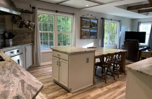 Secluded and private this cabin is nestled on 60 acres with a pond, 2 miles of private hiking trails, and stunning views. The cabin recently underwent significant renovations creating a cozy, updated space perfect for couples and small families.