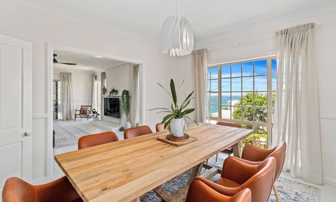 Start your day with breakfast on the balcony and stunning views overlooking the Royal National Park and coastline at this family-friendly stay, a stone’s throw from Stanwell Park Beach. This light-filled haven features an inviting, open layout extending to generous outdoor areas, with the ease of Wi-Fi and a workspace, a private washing machine, three living zones and two bathrooms. Take a dip and dry off on the sun-dappled lawn, ending the day with a movie on the sofa or a soak in the bathtub.