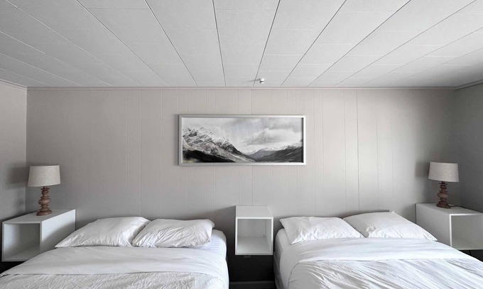 Room 1 at the Stargate Motel has two queen beds, updated furniture, and new vinyl plank floors. Enjoy blazing fast WiFi, freshly ground gourmet coffee, and a Roku smart TV. Benefit from contactless check-in and spacious parking for boats, snowmobiles, and off-road vehicles. With direct access to ORV and snowmobile trails, it's perfect for adventurers.