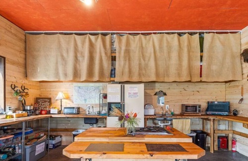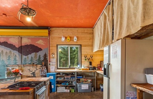Commons Area Lounge is centrally located between all 5 of our cabins and has WIFI, AC Power, Full Kitchen, dry food storage, dining/lounging spaces, local info, extra blankets/games/books. BBQ is around the corner and is also shared among all the guests.