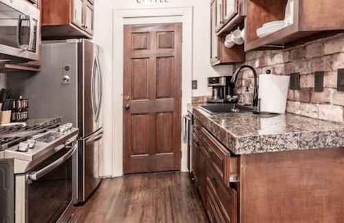 Enjoy this bright two-bedroom space recently updated and furnished with modern, stylish decor and everything needed for your stay. This first floor unit has keyless entry, and guests may enjoy the shared fenced lawn and patio w/ grill, fire pit and dining area. A great place for pets, string lights turn on automatically each evening, creating a city oasis. We're minutes from downtown, the SOBO district, Cherry Street, the Gathering Place, Brookside and more!