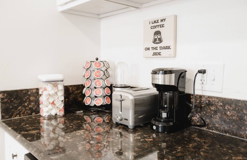 Come enjoy this Star Wars themed two bedroom unit in Sacramento. From X wing to AT-AT walker to Death Star and Baby Yoda with the Mandalorian and light sabers. This is a fun place to hang out while checking out other attractions of Sacramento.