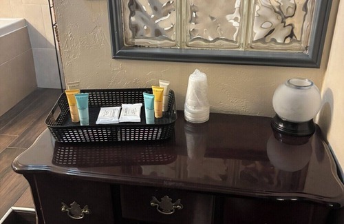 This duplex cottage is a simple getaway with a king size bed. The bath features a double whirlpool tub with a corner shower and a kitchenette with microwave and mini-fridge. Pet friendly. $35 per pet fee plus $50 refundable deposit. Built in 1994, this bed and breakfast has the look and feel of a 1900's mansion, accompanied by a wrap-around porch, covered patio, and grand staircase. Take a tour to our Koi pond and sit on the dock and enjoy the quietness and serenity of the beautiful country flowers and trees or just grab a cup of coffee and sit outside on the patio and breath the fresh air. Tempting aromas permeate the home during breakfast and dinner, and international hospitality greets guests around every corner. There's no need to get ready early as we deliver a freshly prepared private breakfast to each room. In the evening come and enjoy a quiet evening with dinner and a cocktail or a glass of wine. We offer a full service bar with many options to choose from. Dining room seating and outdoor patio seating available.