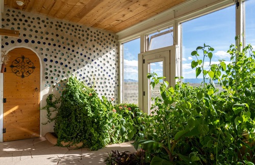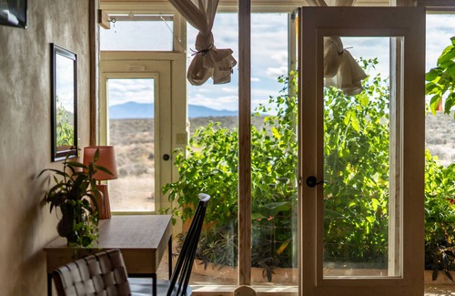 The Earthship's ecosystem has been thoughtfully designed to accommodate a range of plants that thrive in its optimal conditions. You'll be able to spot a range of species, including tomatillos, aloe vera, and even a fig tree! The Encounter is also completely off-the-grid, which means it utilizes solar panels to collect energy from the hot New Mexico sun to power the entire home. Filtered snowmelt and rainwater is used for home use, so you'll be able to enjoy a sustainable and eco-friendly stay.