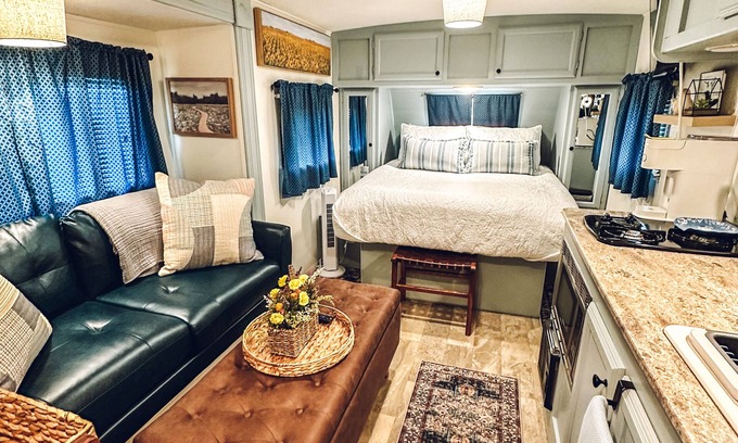 Nestled in Springtown, this delightful recreational vehicle features 1 cozy bedroom with a queen bed, a modern bathroom with a refreshing shower, and convenient amenities like AC, WiFi, heating, and coin laundry. Guests can unwind in this phenomenal space, perfect for a relaxing getaway. We'll be available to answer any questions while you stay at our place.