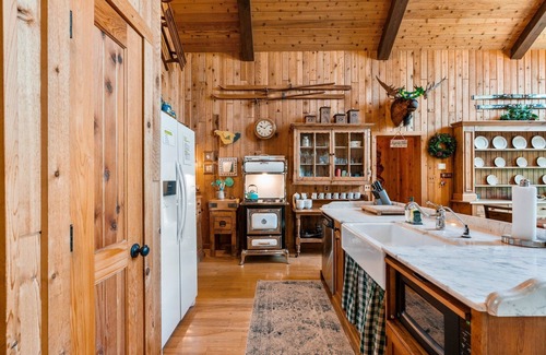 The open floor plan contains the living room, dining area, and kitchen, and the large wood burning fireplace will be the central gathering place on a cold winter night to cozy up to watch a movie, read a good book, or just enjoy being together. For those interested in friendly competitions, there is a separate game room complete with a bumper pool and ping pong. The bumper pool can be converted into a puzzle/ board game table. The home is equipped with high-speed Starlink Internet, which is perfect for working from home or streaming your favorite movie!