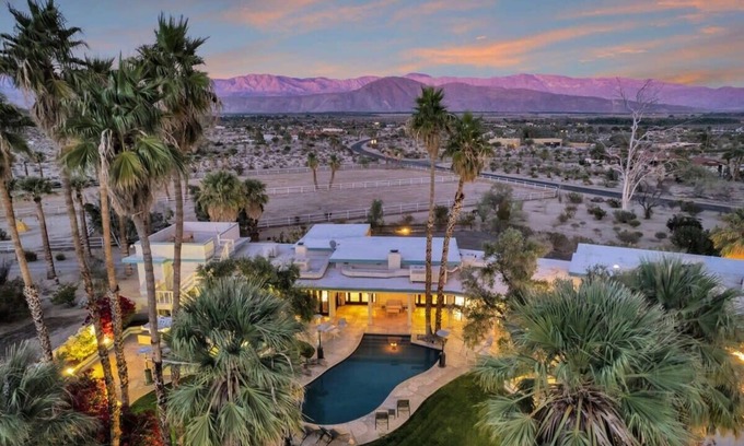 Escape to the serene beauty of the Anza Borrego desert at Starlit Ranch. This 7 bedroom, 6 bathroom pool home is newly renovated and designed to offer comfort and style, with style and steeze of a mid-century and art deco vibe. Immerse yourself in breathtaking views of the Santa Rosa Mountain range, and enjoy the mid-century vibe of this magnificent property.
