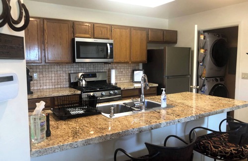 The fully equipped kitchen provides plenty of space for prepping, cooking and most importantly, enjoying a nice family meal. There is an abundant amount of cooking utensils and dishware along with extras including a Keurig and new countertop appliances for your use. You may even choose to eat at the counter while seated in the Mexican style bar chairs, the new dining table or outside on the patio.