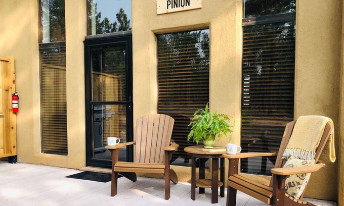 Nestled in the towering pines of the Wapiti Meadow Ranch, a horse ranch in the Rockies of Colorado, the Pinion Bunkhouse is both secluded and magical. This is a completely remodeled studio apartment with a queen bed for comfort and a full-sized kitchen for function. Charming touches inside add to the rustic feel of the wood ceiling and log beam running throughout. The Pinion Bunkhouse provides all the essentials needed for a comfortable stay while keeping things simple and affordable.