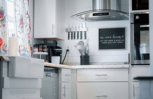Step outside, where romance lingers in the air. Let your pup play freely in the fully fenced backyard while you enjoy a glass of wine by the fire pit. Grill dinner together on the gas grill (we provide the propane!), and savor the evening under a canopy of stars on the private veranda.