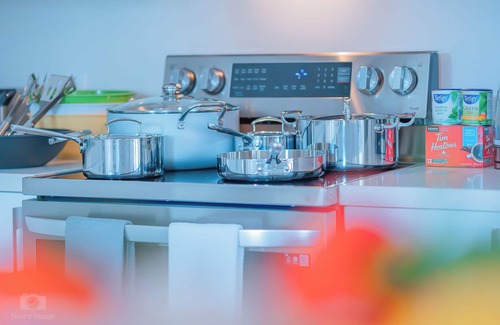 Our two thoughtfully appointed bathrooms are designed with your comfort in mind, equipped with a shower and a hair dryer for your convenience. We understand how important it is to feel at ease, which is why we've stocked the kitchen with essential spices and left a refreshing welcome beer in the fridge just for you.