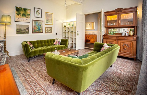 Look forward to this exceptional and beautiful house that invites you to immerse yourself in the life of nobility. On several floors you can enjoy the interplay of antique furnishings, colorful design and high comfort as you stroll through the sophisticated house. Sleep in the four-poster bed or whip up delicious meals in the dining kitchen, which you can take in the dining room or on the terrace. The garden is also an oasis where you can enjoy the sun, read a beech or refresh yourself in the pool.
