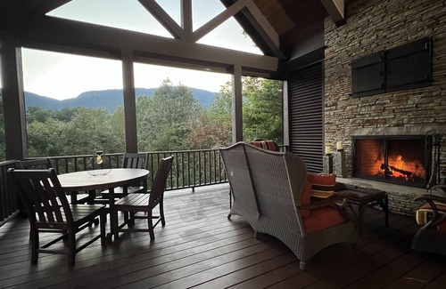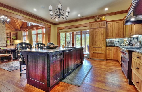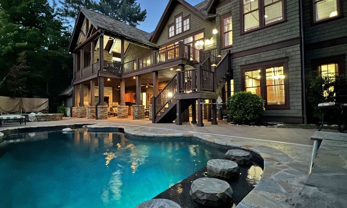 Experience an unparalleled luxury at this opulent oasis, featuring décor inspired by a 19th-century Bavarian hunting lodge. You'll find yourself stepping back in time while getting away from it all. Pull up a rocker, breathe in the crisp air, and bask in the Blue Ridge Mountain views from the 19th-century Bavarian hunting lodge, and you'll find yourself stepping back in time, evolving with each new season. GrandView Lodge is a one-of-a-kind, over-the-top retreat that allows you to unwind in style. Inside, the home boasts soaring ceilings, succulent wood trim, and each has an en-suite bathroom. The gourmet kitchen features river rock granite countertops, high-end Wolf appliances, a Sub-Zero refrigerator, Johnson Brothers China, and Wallace flatware. Reconnect in the striking dining room that can seat up to 12 people with the addition of table leaves. The sumptuous master retreat features stunning mountain views, a magnificent king bed, a cozy sitting area & ensuite spa-like bathroom with heated floors, a smart TV, a jacuzzi tub, and a walk-in Steamist steam shower. Both the upper and lower living areas showcase stone fireplaces and large Smart TVs with full surround sound. This custom home even features a swanky sports bar with a custom-made cork backsplash, a large flat screen TV, and an alluring poker room with a built-in wine fridge. This three-level lodge offers a convenient remote workstation with a second computer monitor and printer. The outdoor space is equally enchanting and can be accessed from the kitchen, both living areas, the master bedroom, and two of the lower-level suites. Relax in the rockers, make s'mores by the outdoor fireplace, dine al fresco, lounge by the pool, or melt your stress away in the massive hot tub. This vacation paradise even comes with a six-seater golf cart! This lodge is not only one of Jeff and Gina's signature properties, but their pièce de résistance and will truly exceed your wildest expectations of a mountain getaway. Whether it's tranquility, adventure, or a combination of both, GrandView Lodge is the perfect place for you. The Blue Ridge mountains are calling…book now if you are ready for the trip of a lifetime!