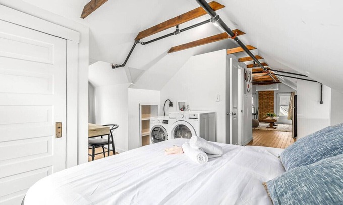 Get comfortable and enjoy plenty of extra room at this spacious studio apartment. Live like a queen or king in this North End kingdom, that has a dedicated work space with super fast 1200 mbps internet and smart TV to keep you entertained. And get ready for the plush bed that will hug you tightly but gently and make you feel you’re floating in the clouds.