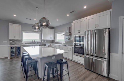 Get ready for the ultimate oceanfront escape at Station Vacation – a brand-new, custom-built 5-bedroom oceanfront home on beautiful Topsail Island- and pet friendly up to two dogs under 30lb with pet fee paid. Designed for luxury, comfort, and unforgettable memories, this home has everything you need for the perfect beach retreat. Unbeatable Oceanfront Location – Step outside to your private beach walkway, multiple decks and soak in the breathtaking water views from nearly every window. Easy Access with Elevator – Move effortlessly between all three levels with the convenience of a private elevator—perfect for guests of all ages! Spacious & Stylish – With three king ensuite bedrooms and private baths, plus two additional bedrooms, everyone gets a room with a view! Each bedroom opens to a deck with stunning ocean or sound views. Chef’s Dream Kitchen – Cook with a view! This well-designed kitchen features a full-size fridge, a mini drink fridge, a breakfast bar and spectacular beach views from every angle. Endless Outdoor Spaces – Relax on the expansive decks, unwind in the large beachside gazebo, and watch the sunset over the sound. Room to Gather – With two gathering rooms, there’s plenty of space for family and friends to enjoy time together in a comfortable open space. Plenty of Parking – The large driveway and covered parking accommodate up to six vehicles. Perfect for Small Beach Weddings – A stunning location for your special day!