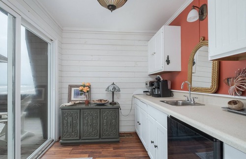Hot tub, Direct Beach Access, Screened Porch, Sun Deck, Covered Deck, Porch Swing, Charcoal Grill, Outside Shower, Foosball Table, 5 TVs, Dishwasher, Microwave, Washer and Dryer, Keurig Coffee Maker, Crock Pot, Wood Fireplace, Wet Bar, Kitchenette.