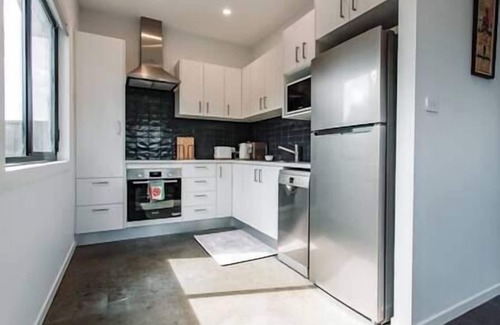 The spacious kitchen is fully equipped with everything you need, including a coffee machine with pods, tea and simple pantry items. The adjoining dining area offers very comfortable seating, perfect for meals with your family or work colleagues. The living area features an electric corner lounge, ideal for relaxing after a long day. For entertainment, there’s a Smart TV and WiFi, so you can stream your favorite shows or stay connected.