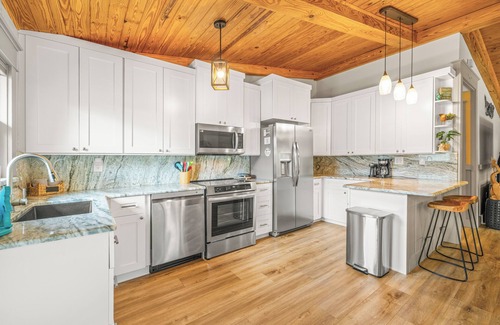 Our home has been COMPLETELY updated and can accommodate your large group with 4 large bedrooms! Bring your boat to tie up or use the six single kayaks and a three person canoe provided for you to enjoy the river... no rental costs.
