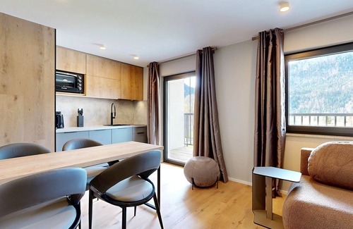 Each apartment provides a kitchen with a refrigerator, an oven, a stovetop, and a dishwasher. Added amenities include free WiFi, a furnished balcony, and a dining area.