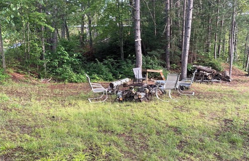 There is a campsite-like space with a fire pit and dock on the right as you come up the driveway. Catch and release, except for bass. Feel free to bring a boat, canoe, or kayak (no boat landing or motorized boats.) Please note there is not a beach area along the shore. *Guests swim in the lake at their own risk.