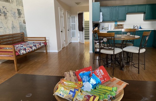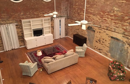 Spacious floor plan 1500sq ft +/- Fully furnished Loft with 1.5 bath, 1-King bed (sleeps 2), (Available upon request for extra guest/s 1-Sofa-sleeper pull out sleeps 1-2, twin day bed sleeps 1.) 2- Smart TVs for self login , WiFi, Kitchenette, Keurig. NO SMOKING. Free public parking, Private coded entry. Located in downtown Brenham. Walking distance to Restaurants & Shopping. Easy access to Highway290