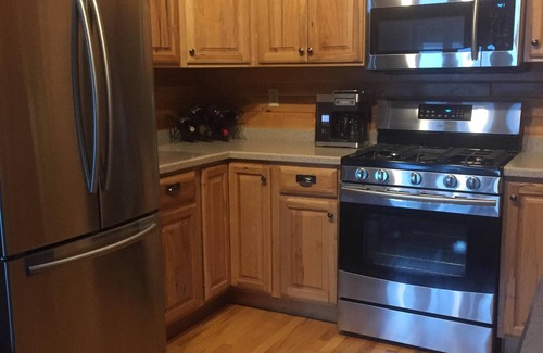 Inside this charming log cabin you will find a gorgeous rock fireplace where you can curl up with a good book on the comfortable sectional sofa. The kitchen has a gas stove and oven, microwave, dishwasher and all the amenities for good cooking and eating, including staples and spices. Flat screen TV/DVD player and WiFi are available for your use.
