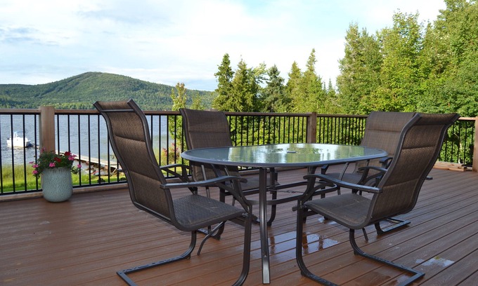 Enjoy the sunny deck with a table, chairs and barbecue that overlooks Lac La Belle and a panoramic view of Mount Bohemia. Enjoy the nights on the campfire patio by the waters edge.