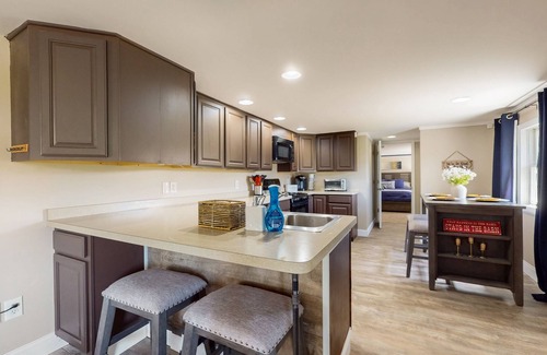 After a day of adventure, relax in the spacious living room with a large TV, or settle into the cozy bedroom, which also features its own TV for added comfort. The property can accommodate RV parking if needed, making it an excellent option for road-trippers or cross country travelers.