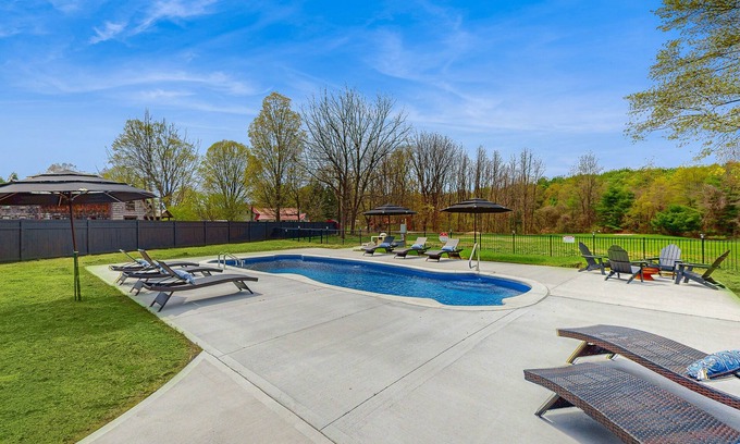 In the warmer months, enjoy the heated pool that provides the perfect place to cool off and unwind. As fall arrives, take in the colorful foliage, visit local orchards for apple picking, or explore the charming nearby towns that come alive with seasonal festivals. In winter, the snow transforms the region into a wonderland—ski and snowboard at West Mountain or Gore Mountain, snowshoe through quiet forest trails, or hop on your snowmobile and take off right from the property.