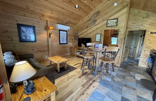 Step into The Bear Den and indulge in its luxurious features. This cabin offers a cozy and intimate setting, accommodating up to 6 guests. With its well-appointed bedroom and thoughtfully designed bathroom, you'll find everything you need for a comfortable stay.