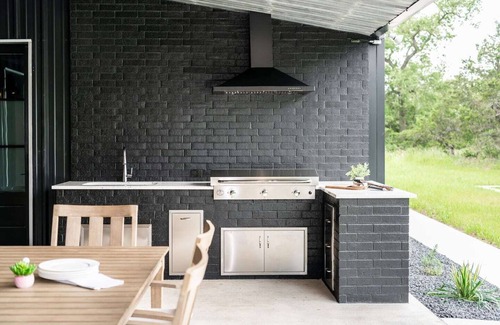 As you arrive at the property, you’ll take in the expansive front porch and entry welcoming you to your home away from home. This spacious 5 bedroom, 5.5 bathroom newly built home comfortably sleeps up to 14 people. Each bedroom has been named after a city in the Lone Star State and uniquely styled with vibrant colors, whimsical touches, and a blend of old and new designs. The rest of the home is elegantly styled with a fusion of antique character, rustic charm, and modern luxury throughout! There’s plenty of playful and interesting details that invoke a feeling of joy, serenity, and creativity.
