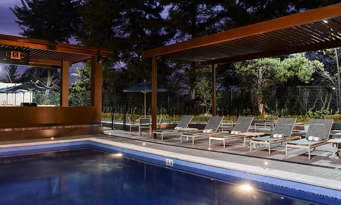 Recreational amenities at the hotel include an outdoor pool and a 24-hour fitness center.