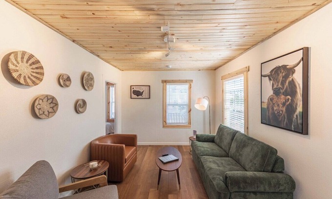 Living area has a comfortable sofa with a pull out mattress. Additional seating and a Flat screen Smart TV set up for Roku internet streaming. Relax and enjoy an evening catching up on your favorite episode or reading a book!