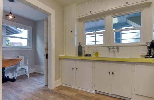 #StayinMyDistrict Downtown Coos Bay! Beautiful and quiet residential neighborhood close to downtown Coos Bay Shopping, Dining & Entertainment. (6-8 blocks walking distance). This 1 bedroom- 1 bath apartment sleeps up to (4). This private residence with updates and amenities throughout offers a comfortable place to stay in Coos Bay. Fully furnished, Cable & WIFI, full kitchen, WD and FREE parking. Comfortable outdoor space & great desk area to sit and work with a view.