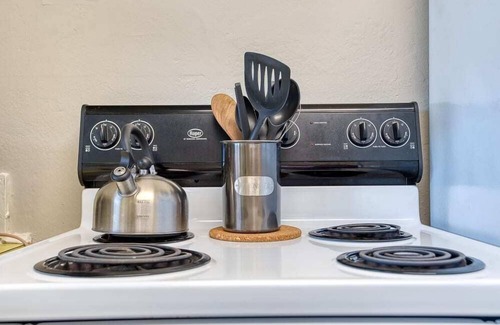 Fully set up kitchen to make cooking enjoyable and efficient. Full size appliances including refrigerator, stove, microwave, coffee maker and toaster to create efficiency. Dishes, utensils and basic cookware included for your convenience.