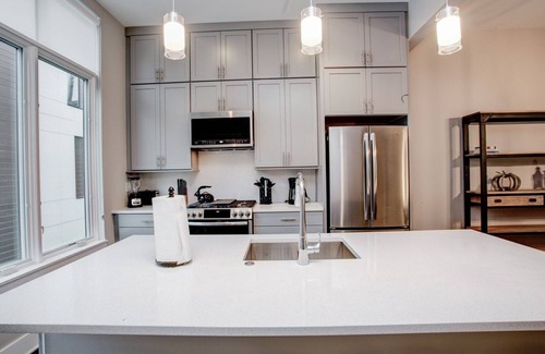 Private, luxury townhome located in the new, upscale Bauhaus residences in downtown Asheville. You are about 15 minutes to Asheville Regional airport, and only 5 minutes to the gates of Biltmore Estate. You are also app. 15 minutes from the Blue Ridge Parkway, and easy access to everything in the WNC area. (2-car garage.)