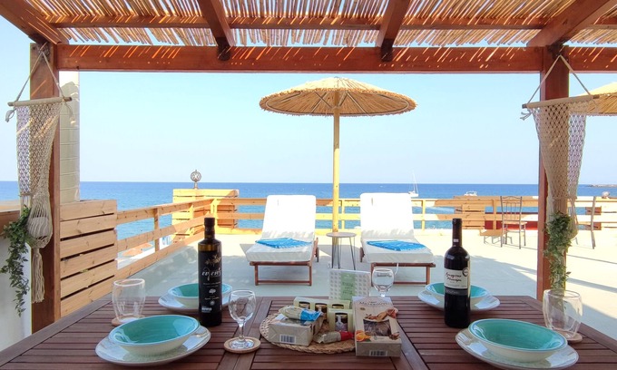 Apartment located in the beautiful Stegna beach , famous for its crystal clear blue waters. Just right on the beach and with great views this apartment can accommodate up to 4 people. Fully equipped kitchen , Satellite and Smart TV , Air Condition , WiFi , Washing Machine , BBQ , Parking.