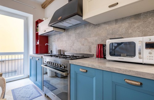 "Stella Blu", 3-room apartment 78 m2 on 2 levels on 1st floor. Bright, renovated in 2018, practical and cosy furnishings: living/dining room with open-hearth fireplace (only for decoration), dining table and TV. Exit to the terrace. 1 room with 1 french bed (160 cm). Kitchenette (oven, 5 gas rings, toaster, kettle, microwave, freezer, electric coffee machine). Shower/bidet/WC. Gas heating. Heating available only from 01.10. to 25.05. Top floor: 1 open room with sloping ceilings, ceiling height 80 - 250 cm with 2 beds. Terrace 20 m2. Terrace furniture. Facilities: children's high chair, baby cot for up to 2 year olds. Internet (WiFi, free). Please note: maximum 1 pet/ dog allowed. Private entrance. IT103050C2636QNCDN