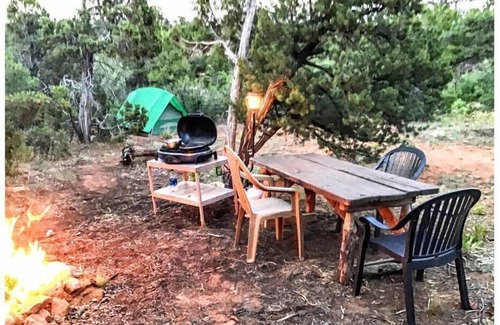 The Van is a perfect overnight accommodation for two people. There is Solar Power to charge her devices. You have a private campsite with the table, chairs and fire pit and room to pitch a tent. Native American artifacts are scattered throughout the area as this was an Area populated by the Indians. There are ruins scattered throughout the canyons below.